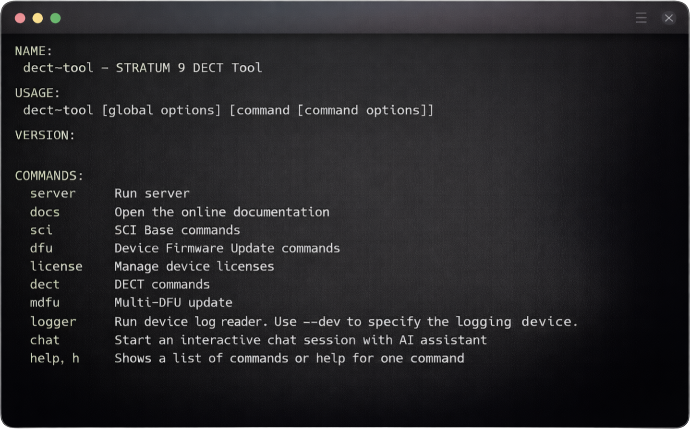 Ein absolutes Alleinstellungsmerkmal: Direkt im dect-tool integriert, steht Ihnen ein AI-Assistent zur Seite. Er beantwortet Ihre Fragen zur Konfiguration, schlägt Befehle vor und hilft Ihnen, Probleme schneller zu lösen. Es ist, als hätten Sie einen erfahrenen DECT-NR+ Experten permanent an Ihrer Seite.