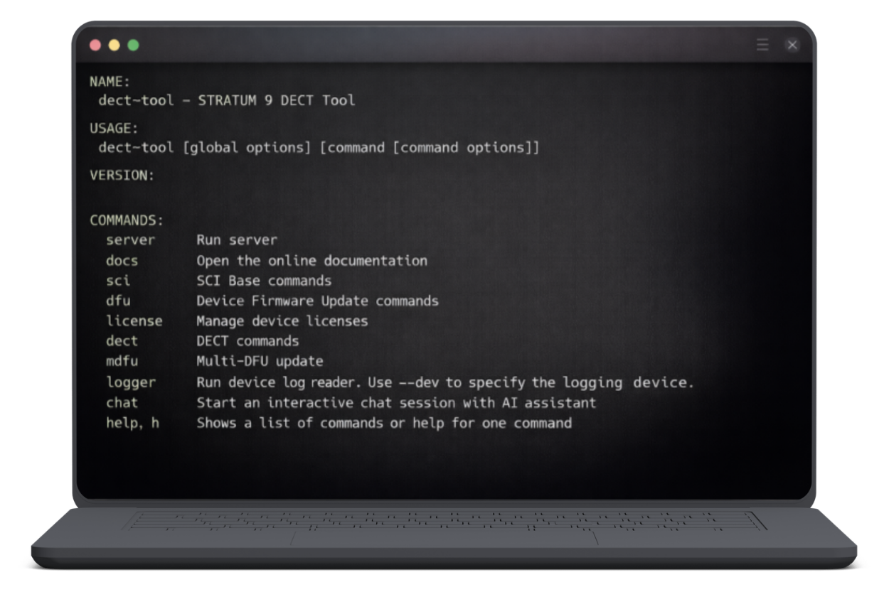 Ein absolutes Alleinstellungsmerkmal: Direkt im dect-tool integriert, steht Ihnen ein AI-Assistent zur Seite. Er beantwortet Ihre Fragen zur Konfiguration, schlägt Befehle vor und hilft Ihnen, Probleme schneller zu lösen. Es ist, als hätten Sie einen erfahrenen DECT-NR+ Experten permanent an Ihrer Seite.